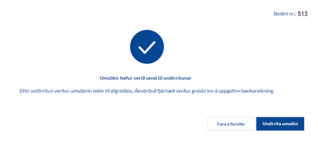 Athygli er vakin á því að umsókn telst ekki móttekin fyrr en hún hefur verið rafrænt undirrituð og bíður afgreiðslu ef ekki er búið að undirrita.