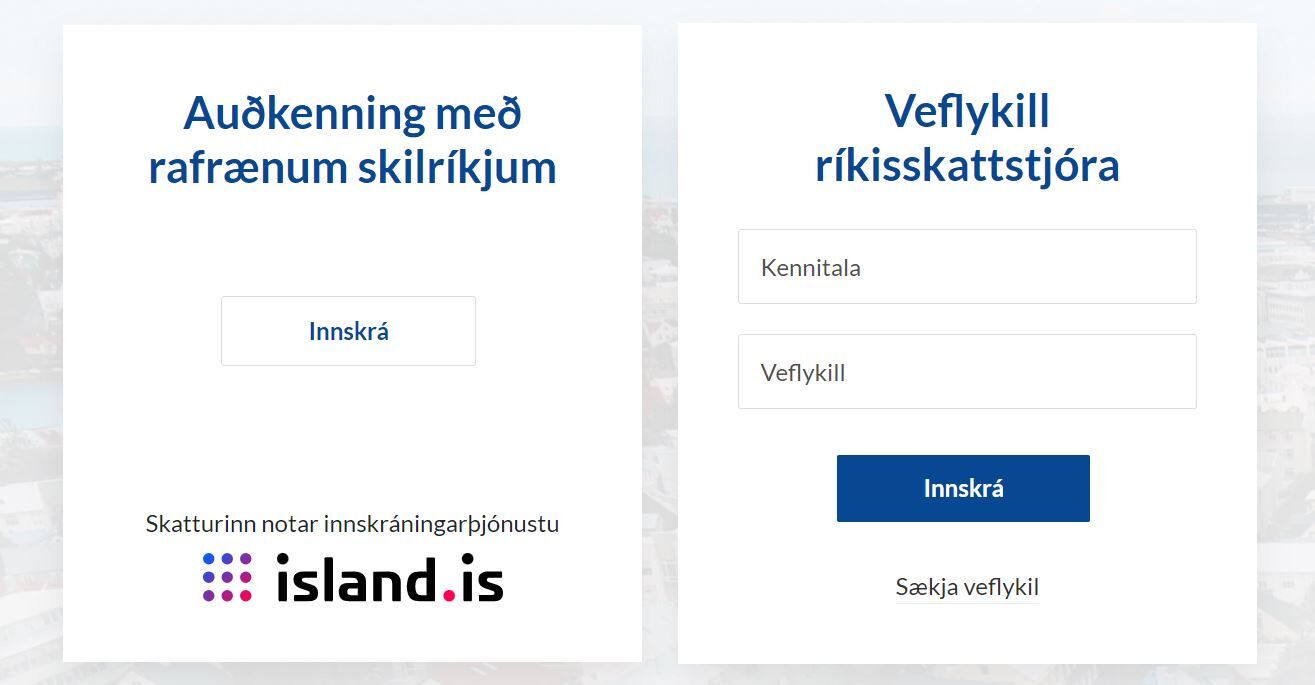 1. Til að sækja upplýsingar um nýtingu persónuafsláttar er nauðsynlegt að skrá sig inn á þjónustuvef Skattsins með rafrænum skilríkjum eða veflykli.