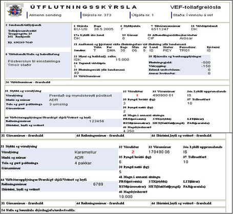 Að öðru leyti þarf að koma fram vörulýsing, útflutningsdagur, útflutningsland, tollskrárnúmer, söluverð, flutningskostnaður og þyngd vöru. Þá skal koma fram samtala söluverðs, flutningskostnaðar og þyngdar. Allir reitir útflutningsskýrslu skulu því útfylltir.