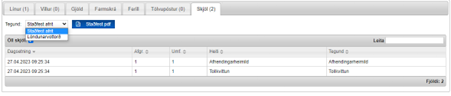 tollalínunni með því að leita að sendingarnúmeri. Í skjalaflipanum neðarlega á