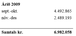 1. Eigi staðið skil á virðisaukaskattsskýrslum einkahlutafélagsins uppgjörstímabilin september – október og nóvember – desember rekstrarárið 2009 á lögmæltum tíma og fyrir að hafa eigi staðið ríkissjóði skil á virðisaukaskatti sem innheimtur var í rekstri einkahlutafélagsins, vegna sömu uppgjörstímabila, í samræmi við IX. kafla laga nr. 50/1988, um virðisaukaskatt, samtals að fjárhæð kr. 6.982.058, sem sundurliðast sem nánar greinir: