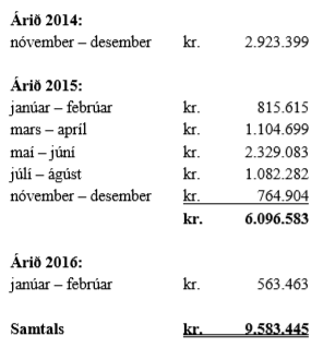 1. Ekki staðið skil á virðisaukaskattsskýrslum einkahlutafélagsins á lögmæltum tíma vegna uppgjörstímabilanna nóvember – desember rekstrarárið 2014, maí – júní til og með nóvember – desember rekstrarárið 2015 og janúar – febrúar rekstrarárið 2016 og hafa ekki staðið ríkissjóði skil á virðisaukaskatti sem var innheimtur í rekstri einkahlutahlutafélagsins, vegna sömu uppgjörstímabila að viðbættum janúar – febrúar til og með mars – apríl rekstrarárið 2015, í samræmi við fyrirmæli IX. kafla laga nr. 50/1988, um virðisaukaskatt, samtals að fjárhæð 9.583.445 kr., sem sundurliðast svo: