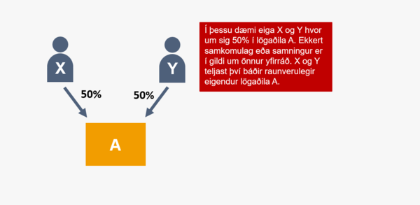 Einnig skal hafa í huga að ef ekki er mögulegt að finna raunverulegan eiganda vegna svo dreifðs eignarhalds að engir einstaklingar eiga eða stýra lögaðila eða ef vafi leikur á um eignarhaldið, skal sá einstaklingur eða einstaklingar sem stjórna starfsemi lögaðilans teljast raunverulegir eigendur.