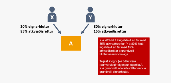 Raunverulegur eigandi skráður á grundvelli atkvæðaréttar vegna hlutafjáreignar í félagi. Hér getur líka verið um að ræða aukinn atkvæðarétt en hlutafjáreign segir til um. Svo dæmi sé tekið getur hlutafjáreigandi átt 20% eignarhlut í félagi en á grundvelli t.d. hluthafasamkomulags fer viðkomandi með aukinn atkvæðarétt.