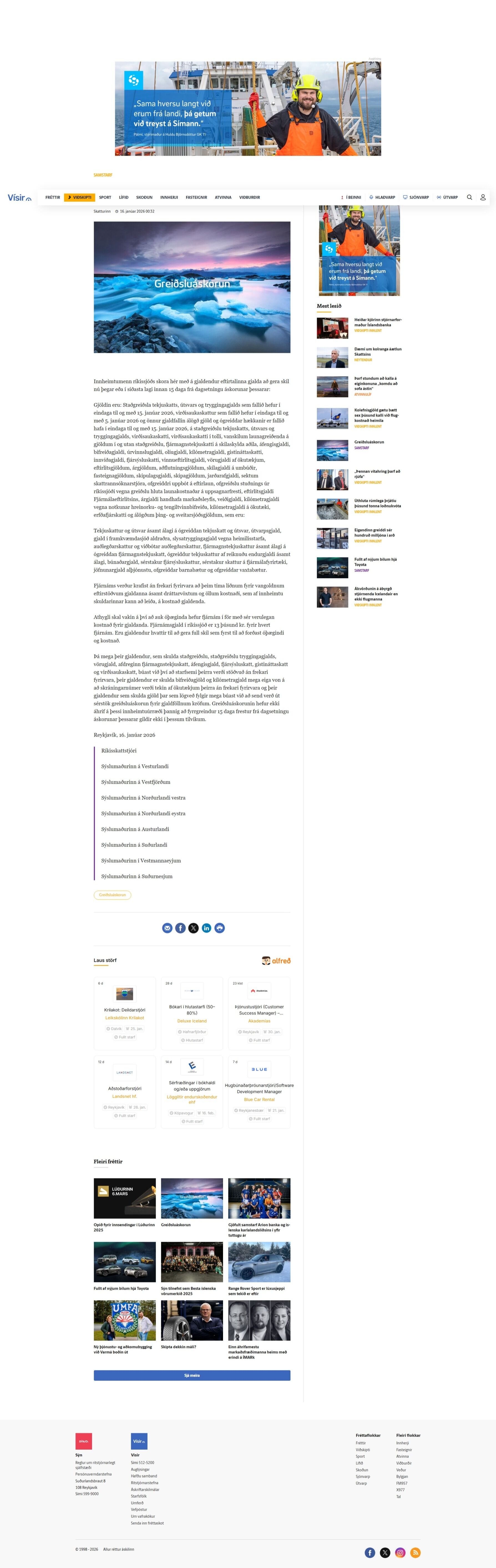 Greiðsluáskorun á Vísi.is 16.1.2026